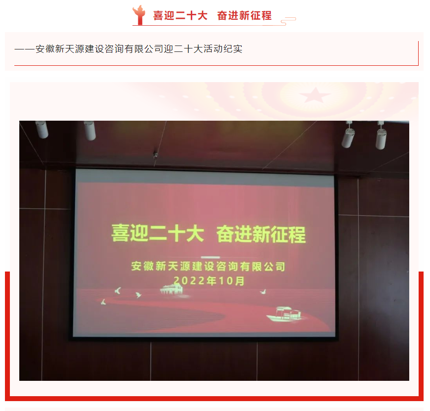 - 喜迎二十大 奮進新征程——安徽新天源建設咨詢有限公司迎二十大活動紀實