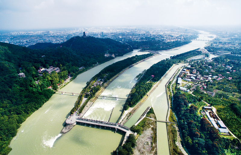 都江堰水利工程位于四川成都,始建于公元前3世紀,以“乘勢利導、因時制宜”和“深淘灘、低作堰”等技術特點著稱,是中國古代勞動人民勤勞、勇敢、智慧的創造(資料照片)。 新華社發